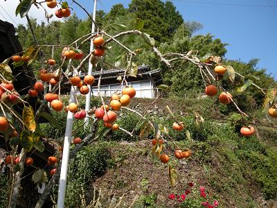 たわわに実った柿。葉っぱも色着き始めてます。 拙者はこういう風景が大好きです。 木の向こう側の石垣、そしてその上に立つ家。 いかに条件不利地であるか。 でも、ここで暮らす人たちはお互いに助け合い、いきいきと生活されている。 なにより、集落の真中を物凄く澄み切ったせせらぎ、小川がさらさらと流れる。 忙しない世間とはかけ離れた、昔ながらの日本の風景。 寅さんがケース片手に「よっ、おばちゃん、元気かい?」 って登場しそうな感じ。 こんな場所で仕事が出来て、幸せです。 昨夜の同級生達との深酒の後遺症も全快。 いよっしゃー、元気出てきたゼイ!!