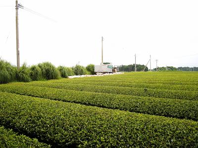 ひろびろー! 遥か遠くには開聞岳が霞の中に見えます。 晴れれば直ぐそこに有るけど、この時期はすっきり見えることは稀。 素晴らしい景色であるが、今年のお茶価格は低迷を続けているそうな。 ただでさえ、燃料価格(茶工場では加工の段階で重油を大量に必要とする)や 化成肥料の値上げで採算が心配されているときに、販売単価の下落は痛い。 価格転嫁出来ない生産者の悲哀。 この素晴らしい風景が将来も維持できるように、 日本人はもちっと茶をずんばい飲め!! (日本人はもう少しお茶をたくさんお飲みくださいませ)ですわよ。
