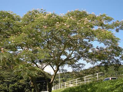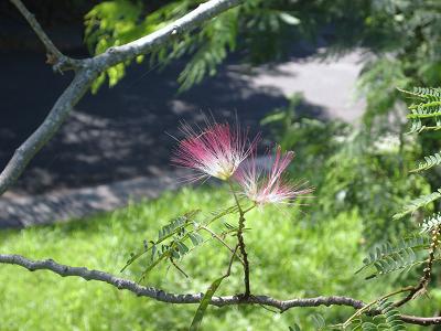 不思議な花じゃね。 ブログを始めるまであまりこういったものには興味なかったけど、 なるほど、よくよく見れば、なんとも奇妙な花。 以前、弊社にもねむの木が有って、花が咲いた事を書き込んだことが有ったけど、 品種が違うのか、白1色でした。それに毎年霜にやられてこんなに大木にはなりません。 もっとも、こんな大木になったら邪魔 即刻切倒される運命。 「ほんのこて、勝手なわろじゃ。」(本当に勝手な人ですこと)