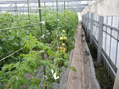 自家製堆肥区(夢ゆうき21」)と農大堆肥区に分けて、更に慣行栽培と遮根シート区に分けて試験中。 様々なデータを取りつつ、栽培の実習を行う、結構専門的な大学です。 学生1人1人が圃場やハウスを自分で管理し、技術を学ぶ。 近い将来の農業後継者や技術者を育てる為の、ハイレベルな教育がなされている。 その中で、様々な失敗や苦労をしながら、学生たちは成長をしていきます。 拙者の次男も初めてのトマト栽培で、基本的なミスを数々経験。 しかしそれが次の栽培に役立てば良いんです。 そんな中で、弊社の製品と、農大堆肥の決定的違いの一端が判明。