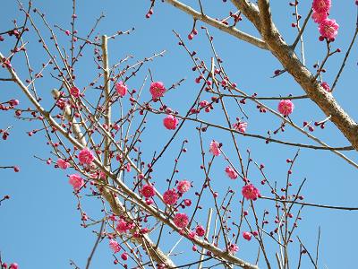 紅梅が咲き始めていて、お~春じゃッど!! 青空をバックにとても引き立っていました。もう一枚。