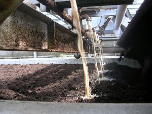 昨日、その前日の雨でやっと本来の気温となりました。 ほんと残暑が厳しい今年の夏。 さて、本日の画像は温度計。80℃を指しています。 これは弊社の1次醗酵層の温度です。つまりこの温度で原料は醗酵しています。 こんだけ高温だと、病原菌や、雑草の種子、おが屑のリグニンやフェノール類は よ~く分解されます。急速醗酵分解の為にはこのぐらいの温度が必要なんだけど、 実は一般的にここまで温度を上昇できるところは あんまり無いんです。エッヘン!! 牛糞+鶏糞で85℃は常にあります。 鶏糞単独で最高94℃まで観測しています。 普通 鶏糞って悪臭の塊みたいなのに、弊社では焦げ臭いといったほうがいいぐらいです。 この醗酵温度だと水分蒸発が凄いので、醗酵に適した水分含量65%にする為に
