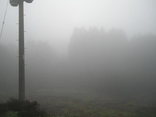 濃霧の中、車体のあちこちをチェック。 1時間ほど電気の流れを辿って行くと、ここじゃ、ってとこが分かった。 原因はバッテリーを固定していた金具が腐食して外れ、その先端がコネクター部の 配線と接触、擦れて漏電に至った事。分かってしまえば修理は簡単。 あっという間に完了。原さん、電気屋さん、貴方方は素晴らしい。有難う。 こんな大きな車体でも、1ミリに満たない配線一つで動かなくなる。 なんか、人生を思わせる、そんな霧の朝じゃッた。 霜が当たり前のように降りてくる今日この頃の鹿児島。 昨日、配達に行ってきました。場所は熊本県八代市東陽町の鹿路(ろくろ)集落。