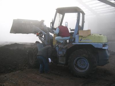 × [PR]上記の広告は3ヶ月以上新規記事投稿のないブログに表示されています。新しい記事を書く事で広告が消えます。 先日のお話。 もう8年以上弊社で大活躍のタイヤショベル。 こいつが無ければ仕事にないもはん(なりません) 結構故障知らず名働き者、だったのだが先日の作業中突然、 ありゃ、まえさいもうしとさいもいかんなよ!! これ、意味分かる?「さい」と「うし」があそんでいるんじゃないよ。 (前にも後ろにも進まないですよ。) 時間は夕方の5時過ぎ。とりあえず、販売とメンテナンスをしている原氏にTEL もう暗くなってから駆けつけてくれて、懐中電灯の明かりを頼りに故障原因を探っては見たが、 さっぱり分からん。翌日に明るい時間に再チェックすることに。 翌朝は、