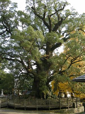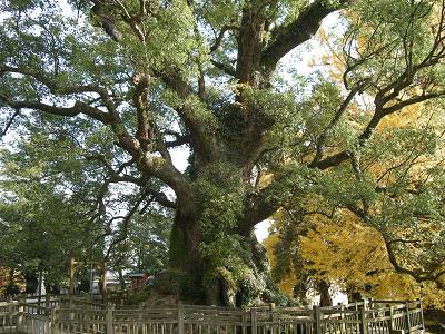 1本でこの大きさ。 圧倒されます。何回見ても底知れぬパワーを感じます。 何せ、1.500歳。聖徳太子の頃から生きている。 詳しくはhttp://www.ajkj.jp/ajkj/kagoshima/kamou/kanko/kamounokusu/kamounokusu.html こちらに細かく説明があります。 楠木の隣には銀杏の木が。