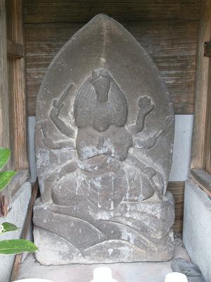 この中に馬頭観音様が。 建立されたのが寛政六寅ノ十一月十八日 奉造立馬頭明王 松山中兵衛 と、観音様の後ろに書いてある。 寛政年間は西暦1789年~1804年 寛政6年とは1794年ということになる。 210数年前、わが松山家ご先祖様が建立された馬頭観音。 これです。