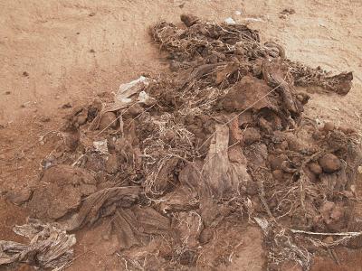 案の定、攪拌羽の変形、脱落多数。 こりゃー困った。 原因は、農家さんが持ち込む生堆肥中に大きな石が混入しているから。 この石に羽があたると、まず、ボルトが切れる。 以前の手入れで、このボルトを丈夫なステンレス製のしたのがまずかった。 ボルトが切れないと、羽が曲がるしかない。 結構高価な羽がグニャリでは、もう使えない。 ボルトなら何回でも交換できる。 んが、堆肥の中で長年頑張ったボルトは、錆付いてほぼ回せない。 んで、結局、ガスバーナーで焼き切り。どちらにしても手間がかかりますわい。 元々、石を混ぜて持ち込むのがけしからんのだが、どなたの堆肥中かが 特定できなくて、文句言えません。全般的にお願いするしかない。 その他にはこんな物が。