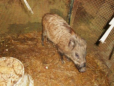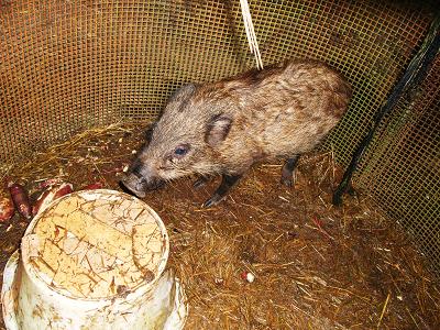 親とはぐれた、いたいけな子猪。 今までの悪さも情状酌量で不問に。 さーて、この後の子猪君の運命やいかに。