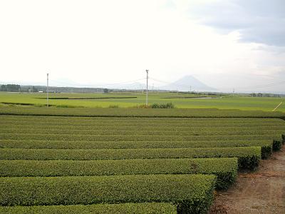 ひろびろー! 遥か遠くには開聞岳が霞の中に見えます。 晴れれば直ぐそこに有るけど、この時期はすっきり見えることは稀。 素晴らしい景色であるが、今年のお茶価格は低迷を続けているそうな。 ただでさえ、燃料価格(茶工場では加工の段階で重油を大量に必要とする)や 化成肥料の値上げで採算が心配されているときに、販売単価の下落は痛い。 価格転嫁出来ない生産者の悲哀。 この素晴らしい風景が将来も維持できるように、 日本人はもちっと茶をずんばい飲め!! (日本人はもう少しお茶をたくさんお飲みくださいませ)ですわよ。