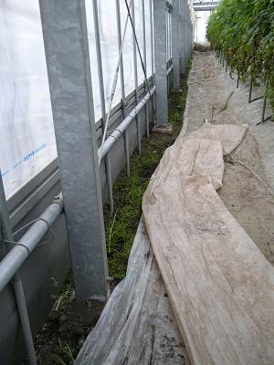 こちらは農大堆肥区。これまでに3回ほど草取りをして、まだ次々と生えてくる。 つまり、除草の手間が段違いに有るということ。 これは農大堆肥は従来の農家が作っていたような切り替えし方式で、 発酵温度が低い為に、雑草種子が死滅していないから。 弊社セールスポイントの1つ。「雑草はうちの堆肥からは生えませんよ」ということを 息子が証明してくれた。うん、感心感心。 後は収量や糖度、果肉の厚さ等、様々なデータが取れる予定。 今後に期待しましょう。きばれ、息子よ。