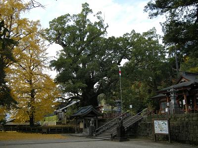夕べから冷え込みが強かった鹿児島。 昨夜は弊社の忘年会。ただ1人の正社員M君、時々来るアルバイトTさん、 青年組織盟友で、鶏糞持込農家Y君、そして拙者の4人で盛大!?に挙行。 まずは中国東北部ハルピン料理が美味いハルピン亭で乾杯。 餃子にチンジャオロースにetc・・・おてしき(たっぷり)食って飲んで、さあ2次会。 ここでアルバイトTさんはお帰り。 夕方からグググ~っと寒くなり、あられもパシパシと降っている鹿児島。 昨日までの、日中の暖かさが信じられん。まこっかよ(本当かよ) 今日のお題、蒲生の大楠。 昨日、コープかごしま姶良商品センターに配達でした。 その帰り道、ちょこっと久しぶりに立ち寄りましたのが、「蒲生八幡神社」 その境内に聳え立つのが、こいじゃ(これです)